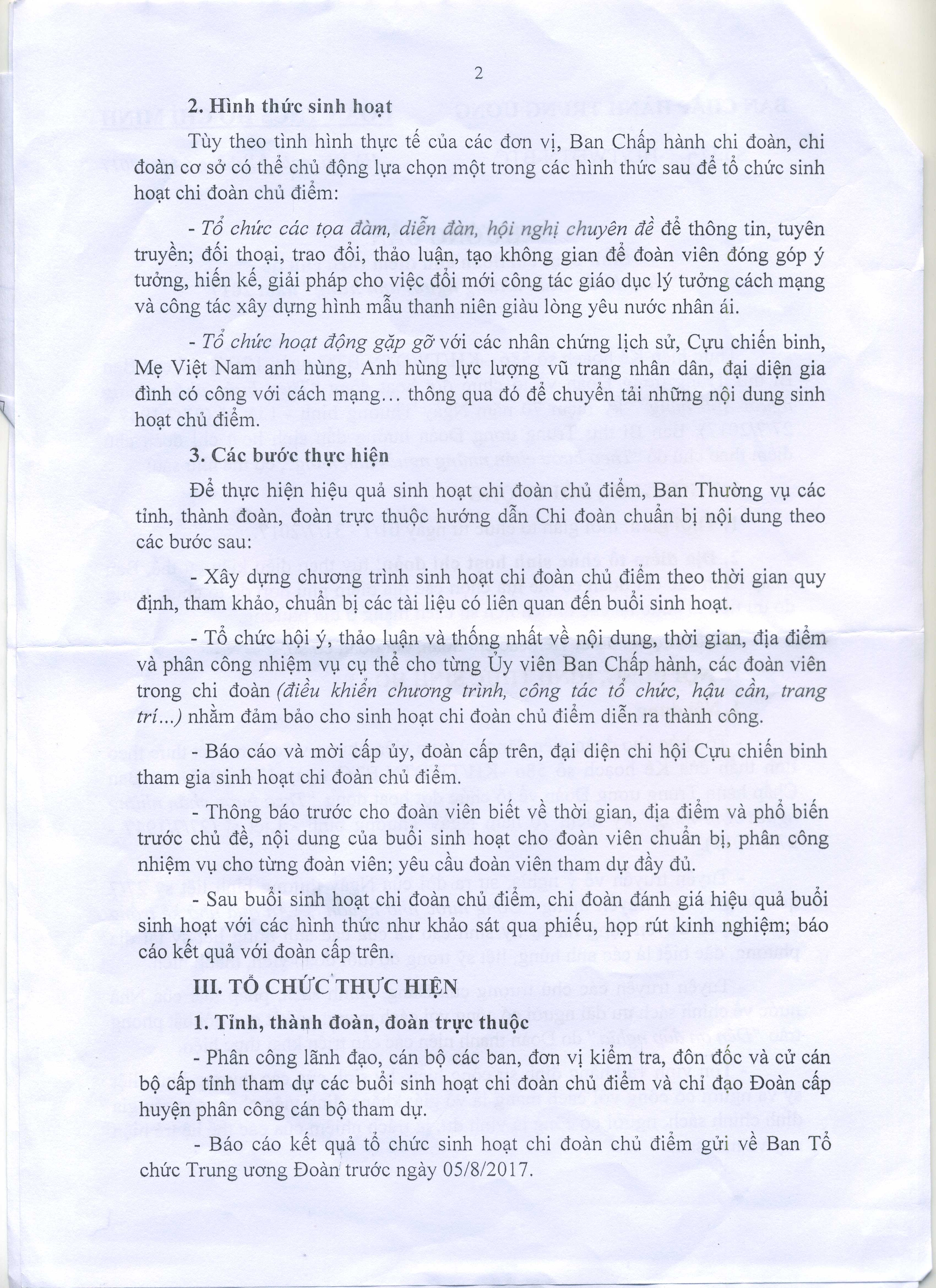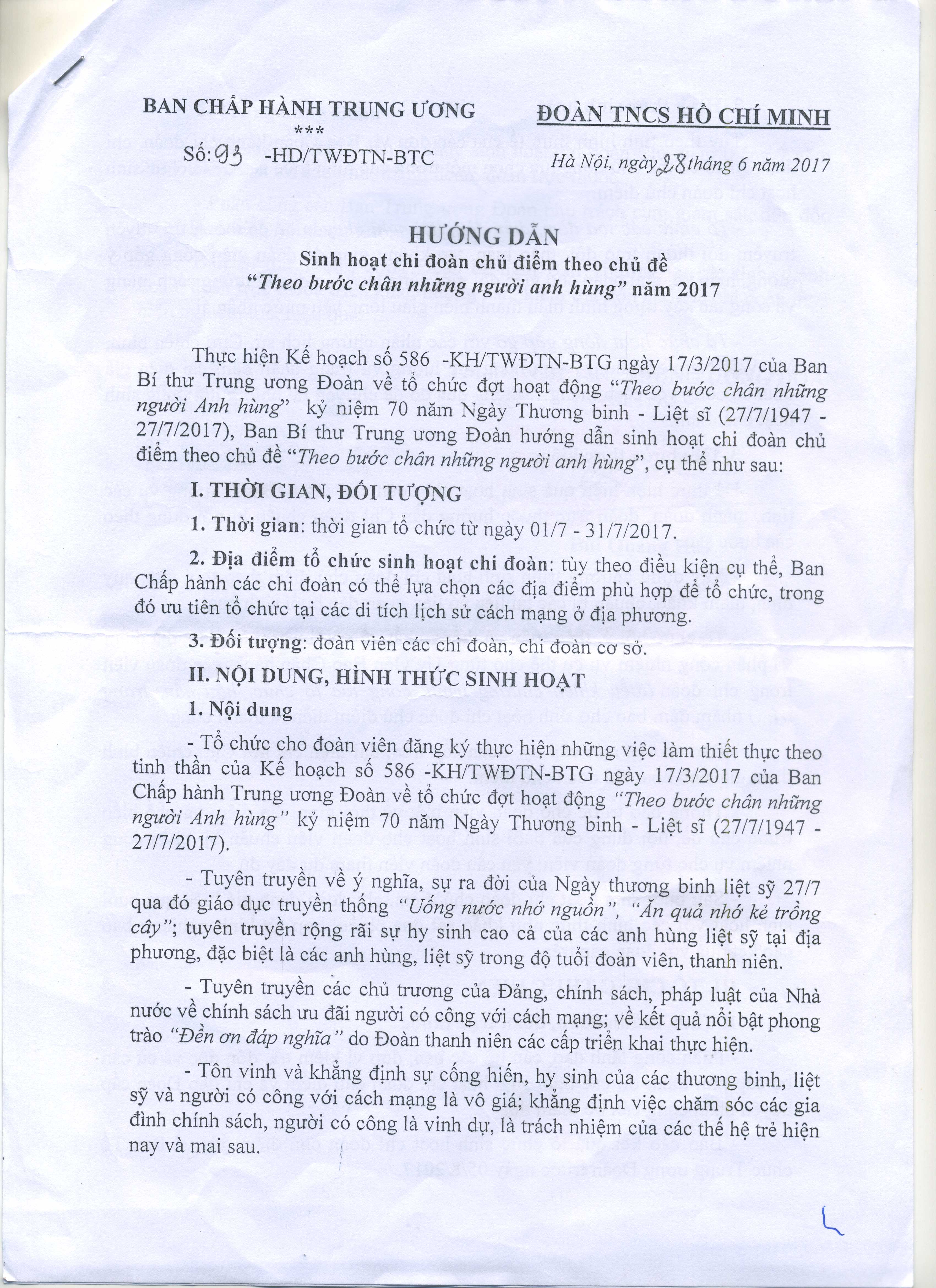 | Trích yếu | Hướng dẫn sinh hoạt chi đoàn chủ điểm theo chủ đề "theo bước chân những người anh hùng" năm 2017. |